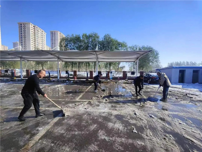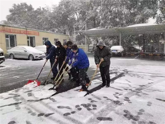 清掃公交場區(qū)積雪,保障車輛安全行駛。